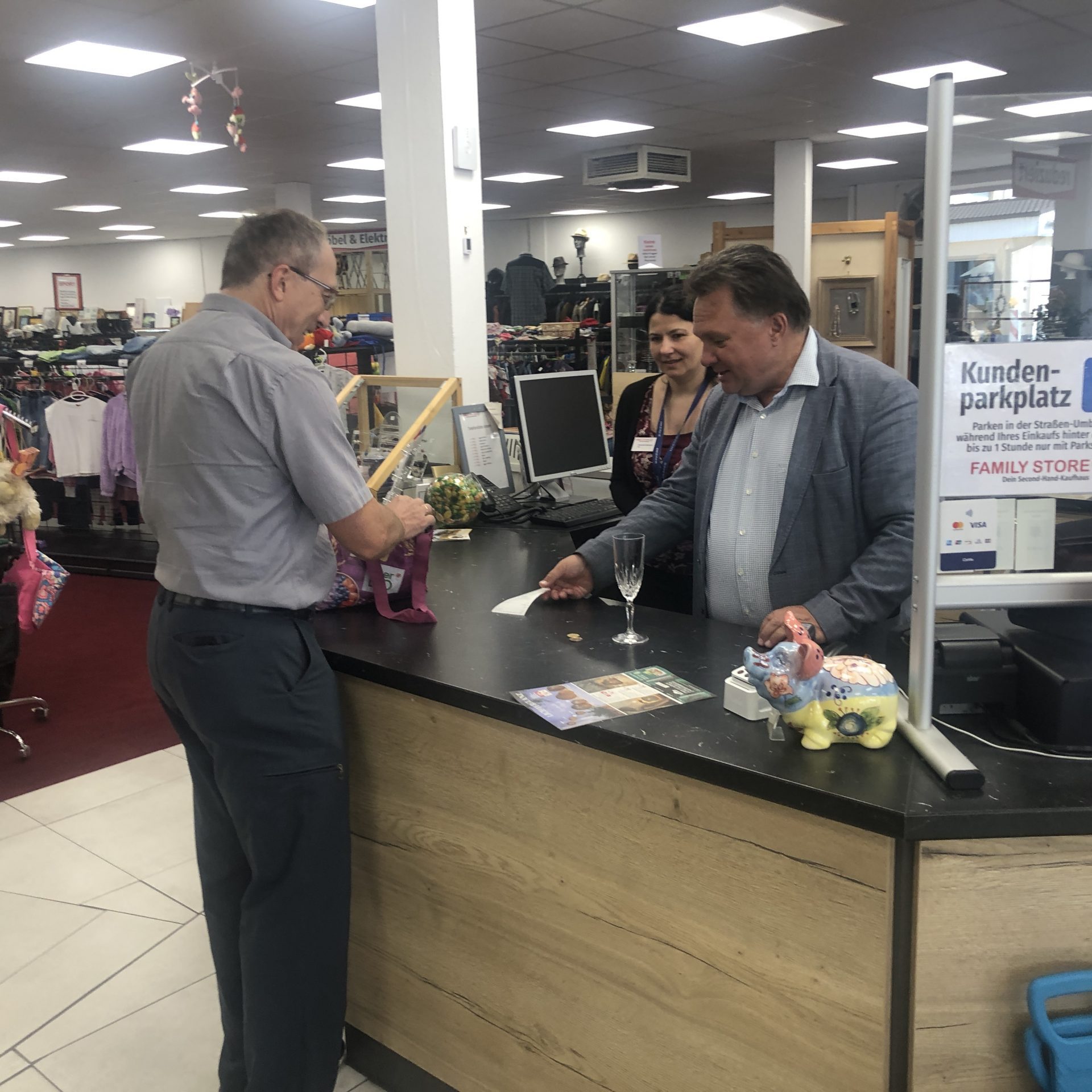 Am 27. Mai übernahm Oberbürgermeister Stefan Bosse persönlich den Kassendienst im Second-Hand-Kaufhaus „Family Store“, und zwar aus einem besonderen Grund: