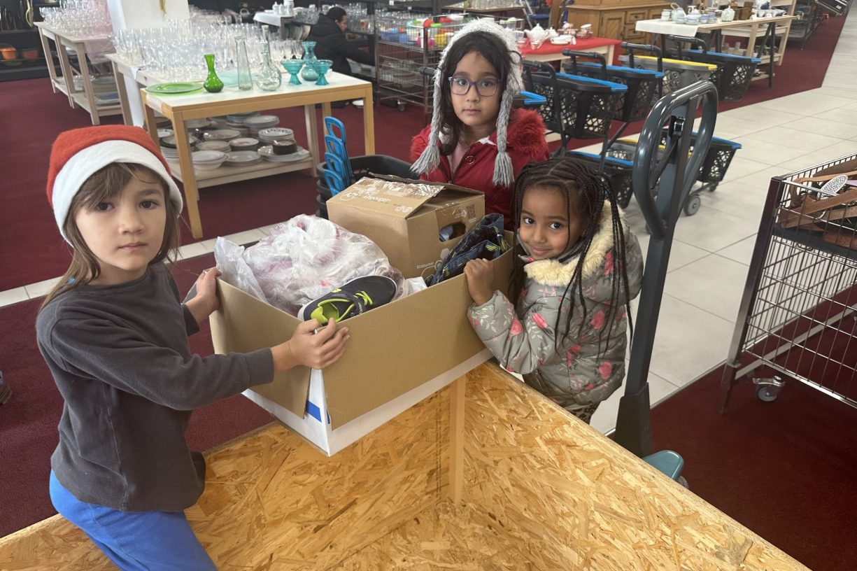Eine herzerwärmende Aktion zum St. Martinsfest erlebte der „Family Store“ in Neugablonz heute, als 17 Kinder der „Blauen Gruppe“ des Kindergartens Jeschkenweg, gemeinsam mit ihren Gruppenleiterinnen Daniela Ruseva und Claudia Sprandel, zu Besuch kamen. Die kleinen Gäste hatten einen Bollerwagen voller gut erhaltener Gebrauchtwaren mitgebracht, die sie dem Leiterehepaar des Second-Hand-Kaufhauses, Sylvia und Matthias Malzkorn, überreichten.